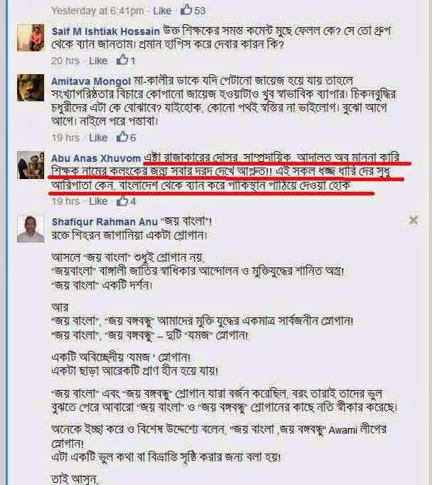 ছবি-১: বুয়েটের অধ্যাপক ড. জাহাঙ্গীরকে আপত্তিকর ভাষা ব্যবহার করে গ্রুপ থেকে ব্যান করা হয়।