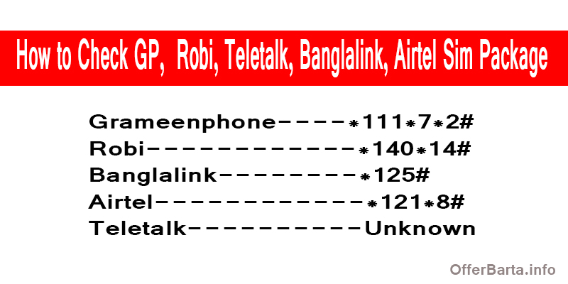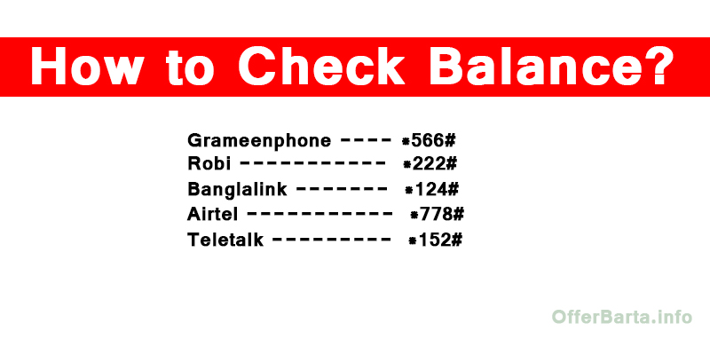 গ্রামীণফোনঃ *566*10#, *566*13#, *567#